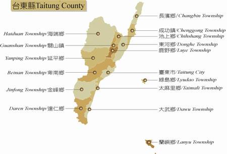 原为高山族聚居地。清同治十三年(公元1874年)置卑南厅,属福建省台湾府。卑南(亦作埤南)或卑南觅系高山族社名音译。光绪十三年(公元1887年)改设台东直隶州,因位台东部故名,有今台东、花莲2县地。日占时期屡经变动,1895年设台东支厅,属台南县。1897年设台东厅。1909年划北部另设花莲港厅。1945年光复后改县。