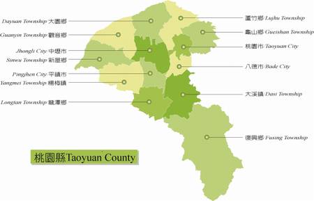 桃园县 名胜古迹 人物典故 地方特产 原名桃仔园。因清乾隆初年闽粤沿海移民入垦后,遍植桃树,遂以为名。日占后,1901年设桃仔园厅,两年后省作桃园厅。1920年设桃园郡属新竹州。1945年光复后郡改区属新竹县。1950年9月析出置县。 人口:189.1万(2006年6月底统计数字) 面积:1,221平方公里 慈湖前景