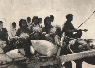 新疆建设兵团农二师部分指战员在这里当年开荒,当年生产。图为国产北京四号康拜因,在辽阔的塔河两岸收割小麦。(1961年)