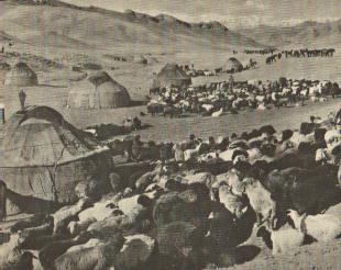 放牧在春牧场上的乌恰县托云公社的羊群。(1964年)