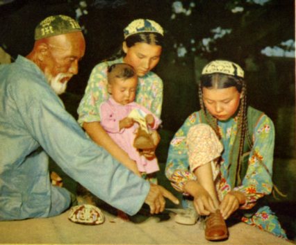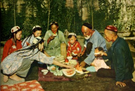 过节了,新疆省(现为新疆维吾尔自治区)吐鲁番县维吾尔族的老农民阿依甫和家里人都换上了新装。阿依甫在解放前曾给地主当了44年长工,结果是一贫如洗。1952年土改时,他家分了18亩地,3亩果园,一所房子,20只羊和3匹马。去年他参加了农业生产合作社,收入更多了。