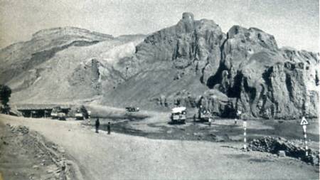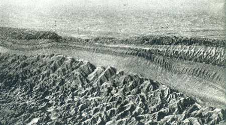 我国十七世纪著名神话小说《西游记》,曾描写唐代高僧去西天取经,路过“火焰山”的故事。据文献记载,这里是我国地势最低和最热的地方(最高温度达摄氏四十八度)。盆地之北,有一座长九十公里、海拔四百米至五百米的高山,岩石多为第三纪砂岩,其色如火,名叫“火焰山”。图为吐鲁番“火焰山”景色。(1964年)