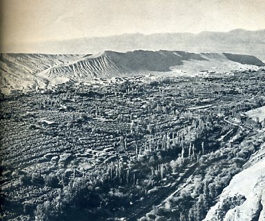 吐鲁番盆地的葡萄沟。这是片五千多亩的葡萄园。