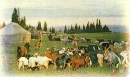 新疆乌鲁木齐县第8区第2乡哈萨克族牧民的羊群。