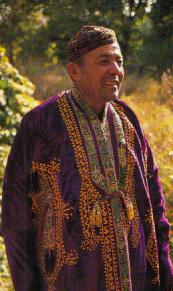 维吾尔族旧时贵族男子盛装。这种金银丝盘绣的盛装袷袢极为华丽。