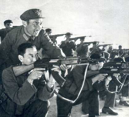 县革委会常务委员、县武装部副部长伊格拉斯(哈萨克族)在指导民兵训练。