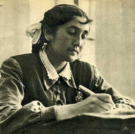 维吾尔族女生,学习模范诺尔妮撒在课室里。