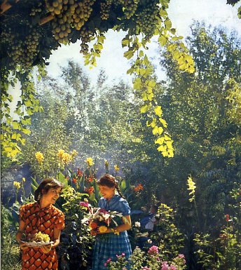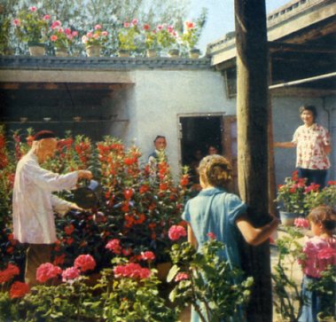 伊宁市郊红旗人民公社社员、七十多岁的阿不都拉很会养花,他的女儿是公社果园生产队的能手,因而他家庭院更为丰富多采。
