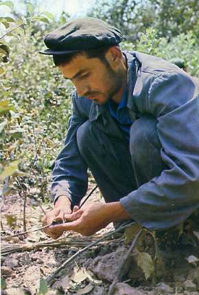 技术小组的社员一个人一天可以嫁接一千多株树苗。