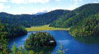 在县城东26公里处。湖长3000米,宽700米,呈葫芦形。海拔3568米,为著名高原湖泊。四周环山,山峰高出湖面300余米,森林面积近万亩,碧塔海是盛夏季节的旅游胜地。