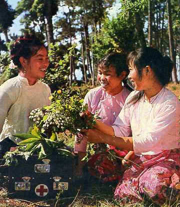 赤脚医生在鉴别采集来的中草药材。