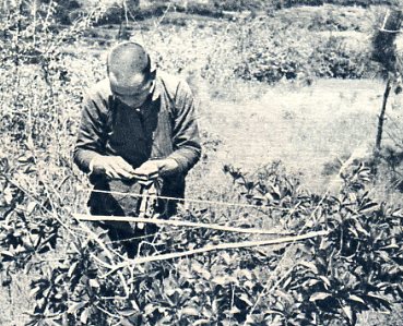 精通鸟语的李德发把活动圈套安在树枝上,给害鸟设下陷井。