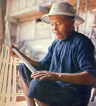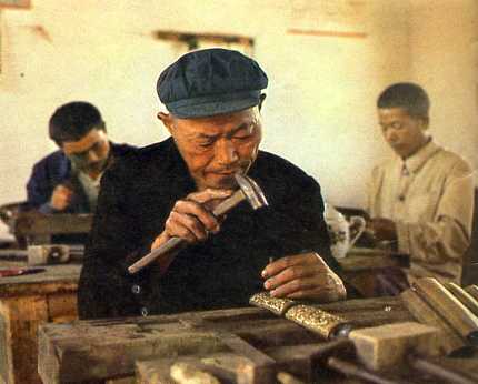户撒民族刀具厂的老工人石老称在刻制刀鞘。