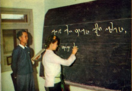 潞西民族中学的学生在学习新傣文。