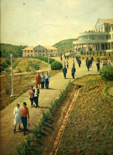云南省工人疗养院在滇池旁边新建的疗养大楼可以容纳350多个人同时休养。