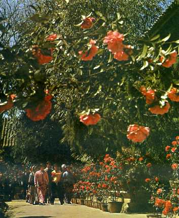 (山茶花)花形很大,色泽艳丽,开于冬末春初。所以宋代诗人曾巩诗说:“山茶花开春末归,春归正值花盛时”。这种花十七世纪从我国传到欧美,被誉为世界名花之一。云南现有“柳叶银红”、“牡丹茶”等三十多个品种。昆明有一株“早桃红”,它的寿命已达三百多年。