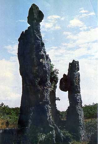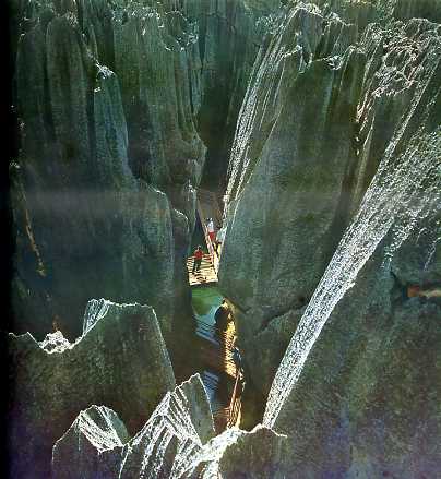 石林是石灰岩地形发育的表现,它有很多孤立的山峰;上部因长久侵蚀风化,峰顶形成各种各样的园锥体。