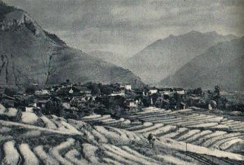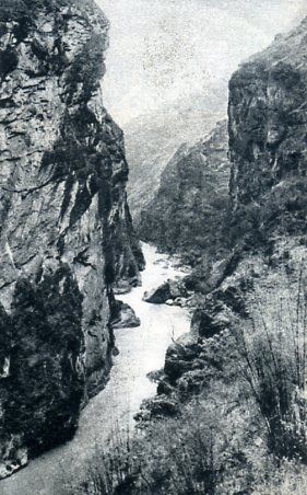 长江全长六千一百公里,是我国第一大河。下游最宽处,达十公里以上,但上游却有宽不到数十公尺的江面,这就是著名的金沙江虎跳峡。金沙江在云南石鼓地区被高耸的雪山阴挡,突然急转折向东北,进入十二公里长的虎跳峡。(1964年)