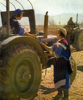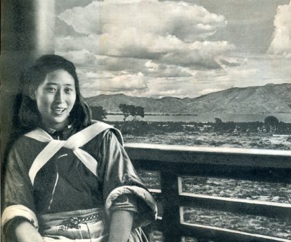 云南丽江益群农业生产合作社社员牛润圆,是一位美丽、能干而又会唱歌的纳西族姑娘。当我们访问益群社时,她在晚会上为我们唱了歌。她的歌,像她的人一样抒情,她的声音,像她的名字一样“润圆”。(1956年)