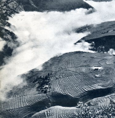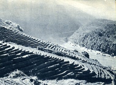 怒江两岸成立了人民公社的傈僳族人民,在去年后六个月中就开山辟岭地兴修了2千多条水沟和6百多座水库,并在陡峭的山坡上增开了8万亩整齐的梯田。