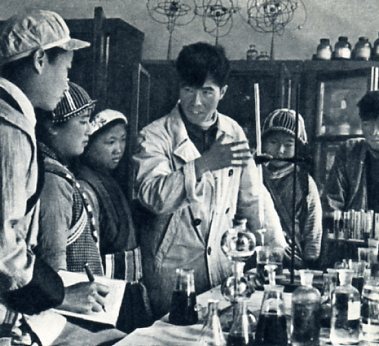 解放前,傈僳族没有一个中学生。现在自治州内已经乡乡有小学,还有4个中学和师范班。这是自治州首府知子罗的的碧江中学,有学生180余名。