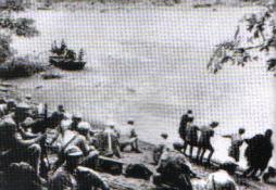 经过充分准备,1944年5月11日中国远征军二十集团军率先在北翼六库栗柴坝至保山双虹桥一带强渡怒江,向腾冲方向发起进攻。图为该集团军所属各部待命渡江。