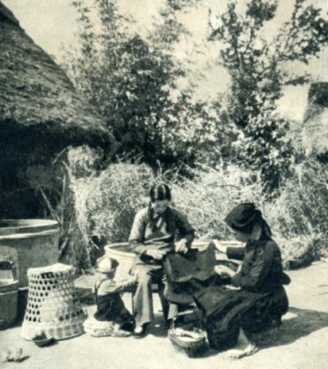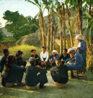 社里的保健员马寿琼给彝族社员的小姑娘种牛豆。