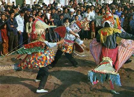云南西双版纳傣族聚居地区,由于连年丰收,出现了许多砖木结构的新住宅。它们具有傣族的特有形式。