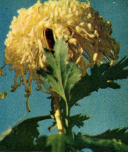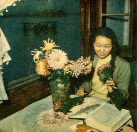 杭州城市建设计划委员会规划科的技术员姚仝影在研究菊花的品种。