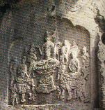 在灵隐寺前飞来峰。有五代、宋、元时石刻造像328尊。散布于飞来峰的青林、玉乳、龙泓、射旭、呼猿诸洞内外和沿溪涧的岩壁上。五代造像大多结构完整。元代造像数目最多,大多雕刻精美,保存完整。