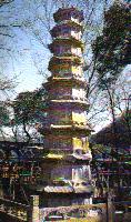 - 在西湖南岸夕照山的雷峰上。吴越国王钱弘俶妃黄氏建。塔身7级。明代嘉靖年间(1522-1566)倭寇侵犯杭州,疑塔中有伏兵,纵火烧塔,仅存赭色塔身。旧日夕阳西照,宝塔金碧与山光辉映,别具风韵。民间传说《白蛇传》中的白娘子,就被法海和尚镇压此塔下。塔于1924年9月24日倒塌。
