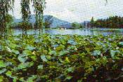 在杭州市之西。故自宋代开始,通称西湖。三面环山,一面濒市。面积6.03平方公里,其中,水面面积5.66平方公里,湖岸周长15公里。湖底较平坦,水深平均在1.5米上下,最深处在2.8米左右,最浅处不到1米。湖面上有白、苏二堤,将湖面分成外湖、里湖、岳湖、西里湖、小南湖五个部分;湖中有孤山、小瀛洲、湖心亭、阮公墩四岛。