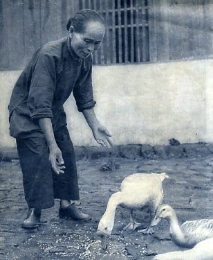 有一次国民党匪军来抢鹅,大妈把一只羊和两鸭给了他们,才把两只鹅保留下来。