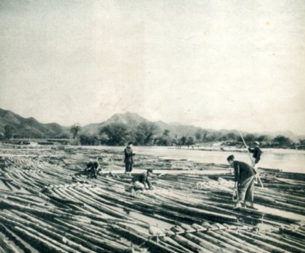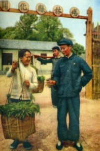 舜山林业生产合作社的社员们在扦插杉苗,使荒山绿化。