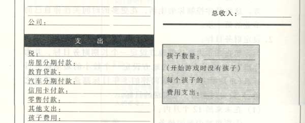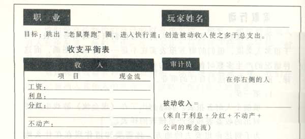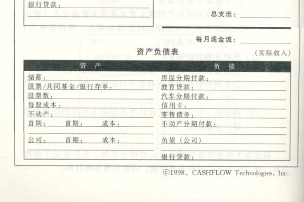 填制个人财务报表。我已列出了在《现金流》游戏中所要列出的收益表和资产负债表的样表