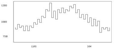 除了“三天图”外,江恩还建议使用一种名为“九点平均波动图”分析市势。