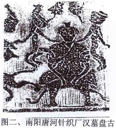 长期以来,人们都以为盘古首见于公元三世纪豫章人徐整的《三五历纪》和《五运历年纪》。1986年饶宗颐先生发表《盘古图考》,指出汉末兴平元年,即公元194年,四川益州讲堂石室已有盘古像。饶先生的这一成果,不仅将盘古出现的时间上推到公元二世纪末,而且在研究方法上,也提供了启迪:神话与宗教是一个事物的两面体,语言与神像联系在一起,两方面的研究可以互证。