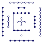 河图以十数合五方,五行,阴阳,天地之象。图式以白圈为阳,为天,为奇数;黑点为阴,为地,为偶数。并以天地合五方,以阴阳合五行,所以图式结构分布为: