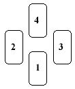 2.请求问者任意抽出一张,将排放在图示中(1)的位置。