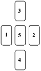 5.掀开 (1) 到 (4) 张牌,把这些牌牌面的数字全加起来,如果这数字小于或等于 22,就从剩下的牌堆中,找出对应其数字的牌,然后不改它原本的正逆位置,直接放到 (5) 的位置。