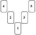 5.同样,数过的牌放在一边。再把剩下的牌重新数一遍,将第六张及第七张牌取出,放在 (4) 及 (5) 的位置。