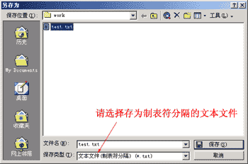 图1 在Excel中将此工作表存为Txt文件 然后启动Dreamweaver,在需要插入此数据表的地方单击鼠标,然后在“File”菜单下选择“Import”中的“Import Table Data…”,单击“Browse”,选择存好的Txt文件,单击“OK”按钮(图2)。