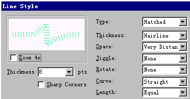 | ●预览成品: 下载源程序 ●逐步说明: 1)制作旋转的圆环:选择工具栏中的画圆工具 ,将画圆工具参数栏中的线框颜色设置成淡绿色,线框宽度设置成8.0, 点击线型下拉菜单中的Custom项,在弹出的对话框中设置线型为如图所示。  设置完毕,点击OK按钮。 2)将画圆工具栏中的填充颜色设置成为无填充。 3)按住Shift键,在工作区中拖动鼠标,绘制出一圆形。  4)选中圆形图片,选择菜单Insert->Covert to Symbol,  在弹出的图符对话框中输入图符名,选择“Graphic”项,  设置完毕,点击OK按钮。 5)在第40帧处插入一关键帧,并用鼠标双击第1帧,在弹出的对话框中切换到Tweening选项卡,设置其参数为如图所示。   表示顺时针旋转一周。 |
