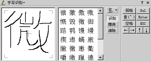 | 三、手写输入 微软拼音的手写识别引擎与市面上销售的各种输入手写笔不相上下。用微软输入法你可以使用鼠标直接在屏幕上书写,只要不是缺很多笔划,它都能识别出来。而且识别速度非常快。 单击状态条上的手写板图标即可出现如图5所示的手写板窗口。单击“清除”按钮清除手写区的内容。按住鼠标左键并拖动出笔划轨迹,放开左键就写完了一笔。 例如写一个“微”字,写好后在右侧候选字窗口内的第一个候选字就是。单击这个字即可将此字送出,此时手写区自动清空,等待下一个字的输入。  图5 手写输入 另外还有一种更方便的方法,可以省掉选字这个步骤。单击候选字窗口右侧的图标按钮,弹出一个菜单,从中选择“手写输入”选项,此时手写板的候选字窗口变成另外一个手写区。我们可以交替地在这两个手写区里写字,而系统会自动连续识别,这样就省去选字这个步骤了。如果用手写笔,汉字输入会非常快捷,而且适宜各种人使用。 怎么样,听了上面的讲解,你是不是也想试一试了! 上一页 返回到主界面 |