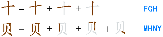 | 二、 怎样拆分汉字 8.成字字根的输入 [小博士] 下面我们讲成字字根的输入。 [晓 宇] 什么是成字字根? [小博士] 在字根总表中,除了键名字根外,本身就是汉字的字根,称为成字字根。比如“马、手、刀”等。这样的成字字根一共有65个,但这些字经常要输入,所以需要掌握其输入方法。 [晓 宇] 怎么输入呢? [小博士] 成字字根的输入方法是:先打一下该字根所在的键,再打该字根的第一、第二及最末一个单笔画。 即:键名+首笔代码+次笔代码+末笔代码 比如,十,键名为F,首笔是横,次笔是竖,“十”的编码就是FGH。虽然不够四码,但也不用识别码。 贝,键名为M,首笔是竖,次笔是折,末笔是捺,所以“贝”的编码就是MHNY。  我来考考你,“手”的编码是什么? [晓 宇] “手”,键名是R,第一笔是撇,第二笔是横,最后一笔是竖钩,所以编码是RTGH。  [小博士] 很好。需要注意,首、次、末笔一定是指单笔画,而不是字根。如果把“贝”字拆成“贝、冂、人”,MMW,这就是错误的了。 练习:输入下面这些成字字根的编码。 马 小 车 戋 川 刀 厂 三 乃 米 八 文 止 虫 心 答案: CNNG IHTY LGNH GGGT KTHH VNT DGT DGGG ETN OYTY WTY YYGY HHHG JHNY NYNY 上一页 下一页 返回到首页 |