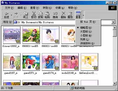 37.在win98下面启用缩略图的方式查看文件 作者: 潘尧 主页://myamei.yeah.net 通常我们在win98下面查看文件的方式只有四种即:大图标,小图标,列表,详细资料,其实还有一种以缩略图的方式来查看文件,这样我们在浏览器中显示图形,HTML文件还有其他类型的文件可以直接查看缩略图,十分方便。