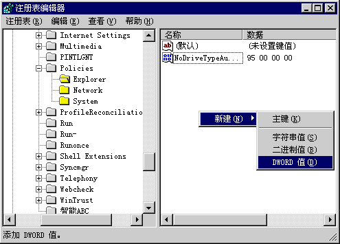 根据一些需要,我们有时要清空桌面上的所有图标,要是直接操作可不是件容易的事 ,不过,你要是跟着我做,就很容易了! 单击“开始”菜单,点击“运行”,在对话框中,输入“Regedit.exe”,打开注册表编辑器。依次打开“HKEY-CURRENT-USER\Software\Windows\Currentersion\ Policies\Explorer\”,在注册表编辑器右侧的窗口中,用鼠标右键,单击空白处,选择“新建\Dword值”,会出现“新建#1”,将其改名为“Nodesktop”,再双击,将值改为“1”,重新启动计算机就可以了。