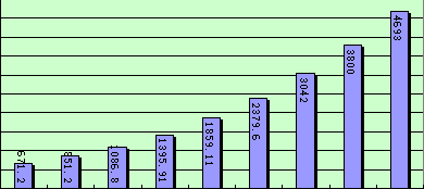| 字体已经设置合适了,下面我们再给图例也添加上一个阴影,在图例上单击鼠标右键,选择“图例格式” ,屏幕上出现一个对话窗,样子和刚才的“图表区格式”窗口很相似,可以设置边框和区域的颜色,这里我们单击“边框”栏中的“阴影”,将其选定,然后单击“确定”。立刻在“图例”下面就添加了一个阴影。 现在看上去图表已经美观多了。 设置图表的标题,现在图表中的横轴和纵轴还缺少相应的标题说明,下面我们就补充这两个标题,在“图表区域”上单击鼠标右键,从快捷菜单中选择“图表选项”。屏幕上弹出对话窗,首先看到的是“标题”选项卡,在“分类(X)轴”栏中输入“年份”,在“数值(Y)轴”栏中输入“产值(亿元)”,然后单击“确定”。 Excel会在默认的位置上添加上横轴和纵轴的标题,标题(与配音一致)字体的大小也可根据需要来更改,方法和更改坐标轴中的字体相同。只需单击“标题”然后,在“字号”栏中输入或选择合适的字号即可。 |
