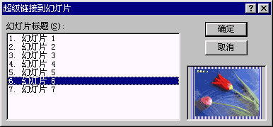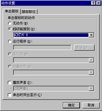 | 3)添加链接动作 在所有照片都插入到幻灯片中后,就可以添加目录页了。在第一张幻灯片前插入一张空白幻灯片,插入一张图片作为背景,并在“图片”工具栏中将这张图片作成水印效果。  为使这一背景不对所有幻灯片起作用,在“背景”对话框中要选择“应用”按钮,而不要选择“全部应用”。单击“绘图”工具栏上的“文本框”按钮,在幻灯片中拖出一个文本框,然后在里面输入图片的名称。选中一个图片标题文字——“舒展的心”,然后单击鼠标右键,选择“动作设置”命令,弹出“动作设置”对话框,选择“超级链接到”单选钮,从下拉列表框中选择“幻灯片”命令,  选择要链接到的幻灯片标题——“幻灯片6”,单击“确定”按钮,再单击“确定”。  动作设置完成了。在放映幻灯片时,只要单击“舒展的心”,就会切换到第六张幻灯片,展现出这张图片。 ☆4)插入艺术字 单击“绘图”工具栏上的“插入艺术字”按钮,选取一种竖排形式的艺术字样式,  然后输入画册名“家庭画册”,字体设置为汉鼎繁古印,如果机器中没装这样的字体,也可设置为隶书,单击“确定”按钮完成艺术字的插入。  单击“艺术字”工具栏中的“设置艺术字格式”按钮,设置填充色和线条颜色,然后单击“确定”按钮。调整艺术字的大小和位置,使其在合适的位置。  ☆举一反三 通过家庭画册的制作,希望您能掌握它的做法,并按自己的想法,设计出具有特色的家庭相册、书法作品集等,甚至可以制作电子书、卡拉OK歌曲集等。这样,您不但可以将有保存价值的东西做成电子版,进行长久保存,还可以提高您的计算机水平,培养生活情趣。 上一节 下一节 |