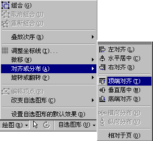 在点击“绘图”弹出的菜单中,还可以进行图形之间的微调。